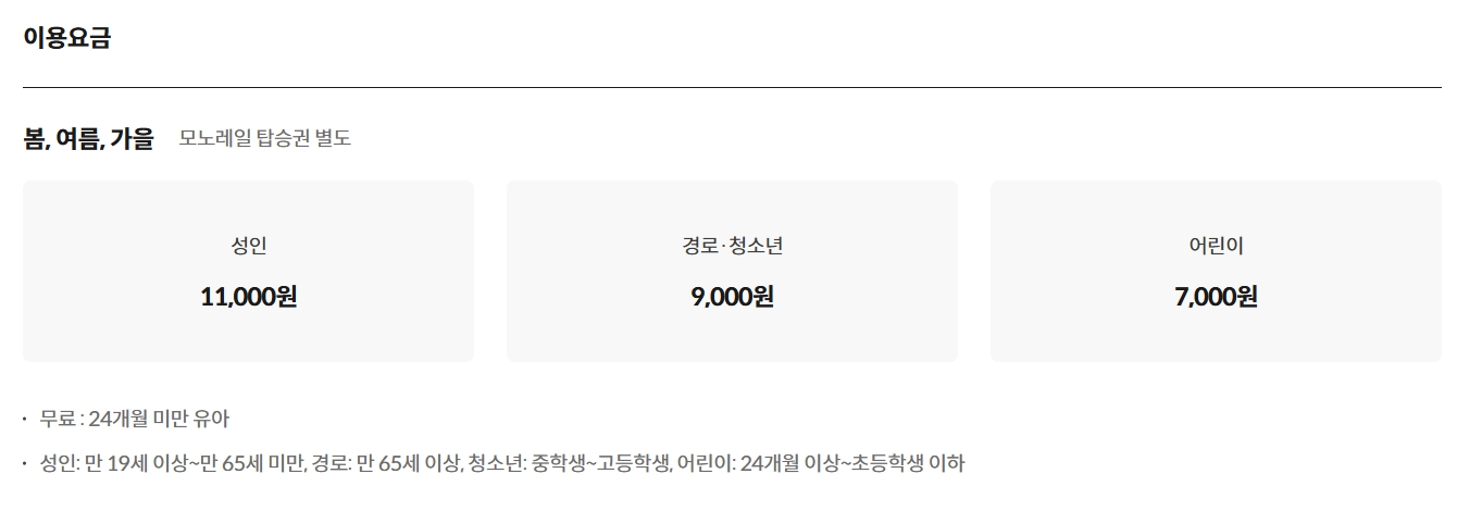 - 입장 요금은 계절에 따라 변동될 수 있으니, 방문 전에 공식 홈페이지에서 최신 요금을 확인하는 것이 좋습니다.