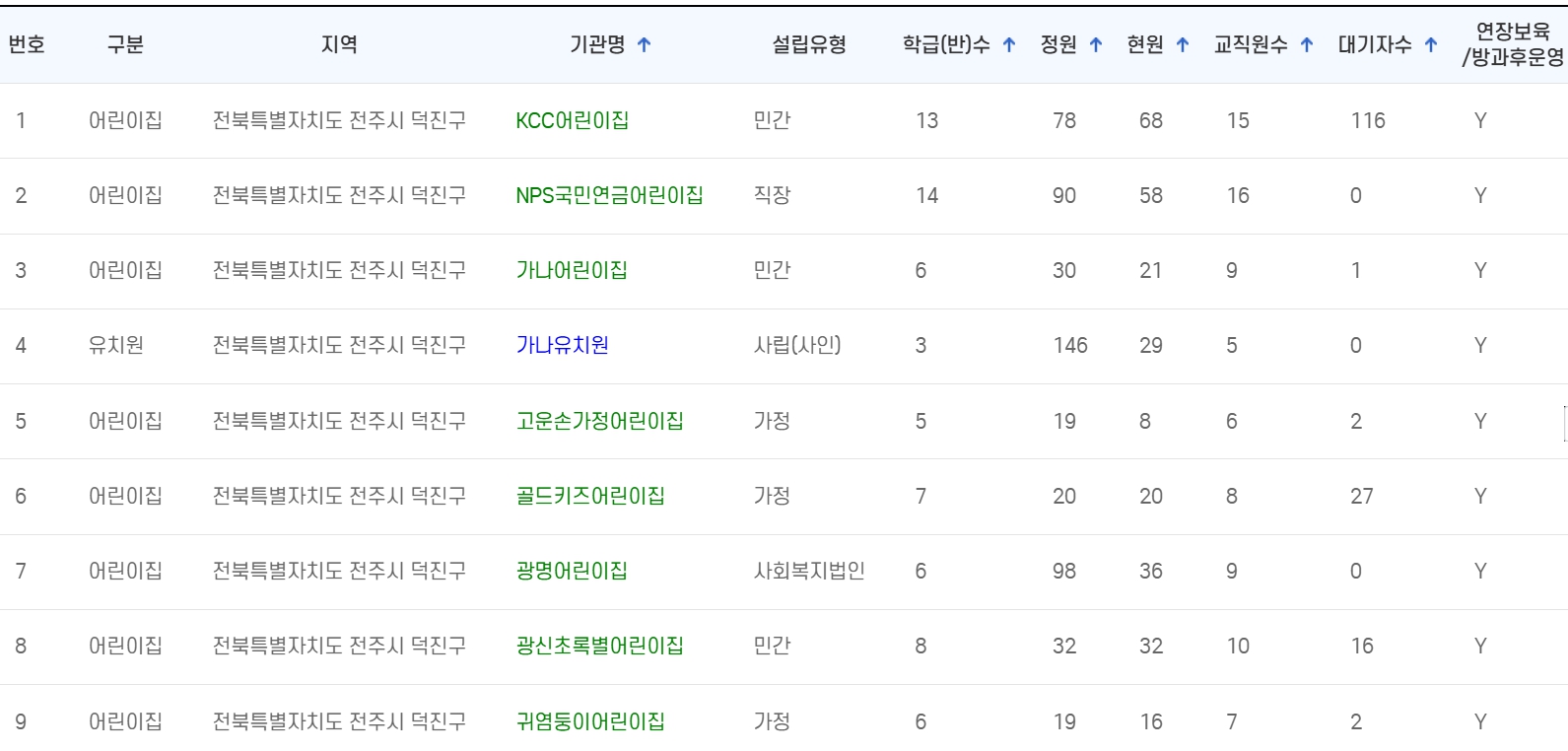 - 포털에서는 지역별 유치원 및 어린이집을 필터링할 수 있어 거주지에 맞는 기관을 쉽게 찾을 수 있습니다.