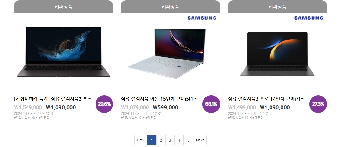 삼성전자 제품 최대 49% 할인율을 제공합니다.