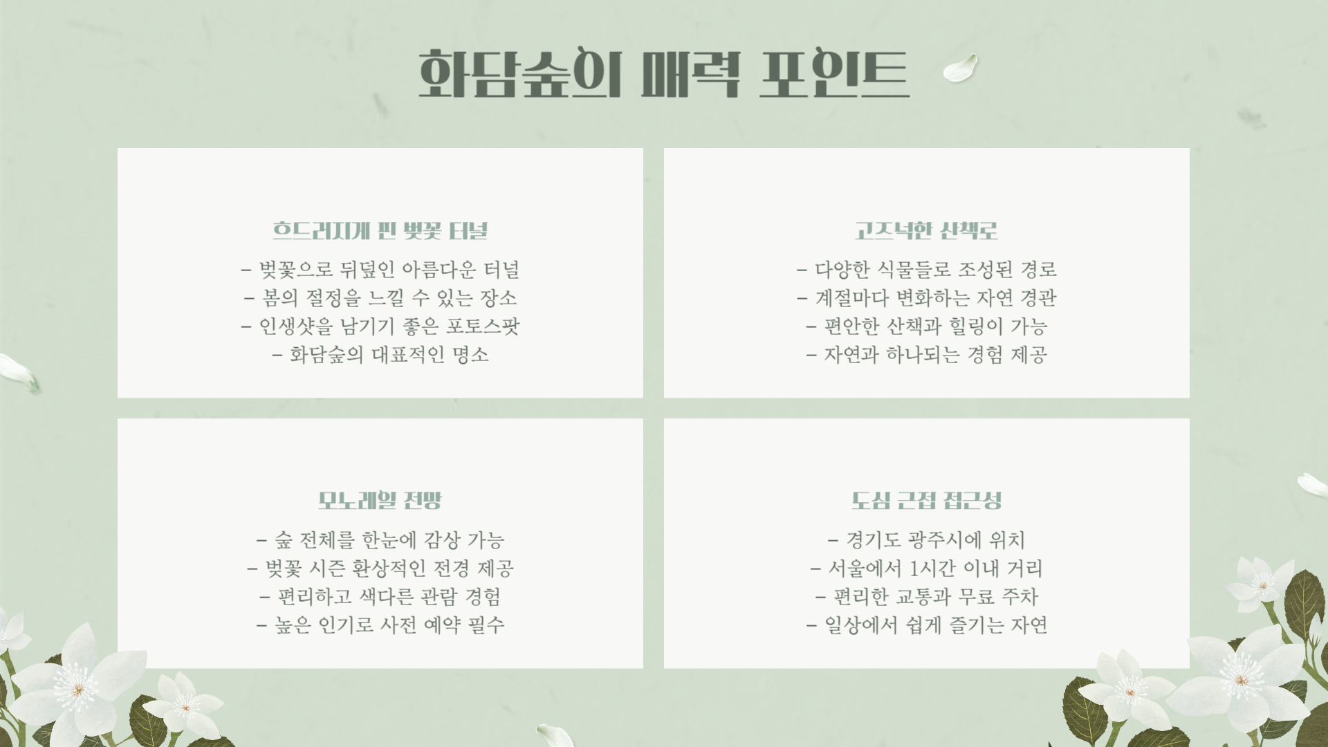 | 화담숲 봄꽃 안내사항 | |