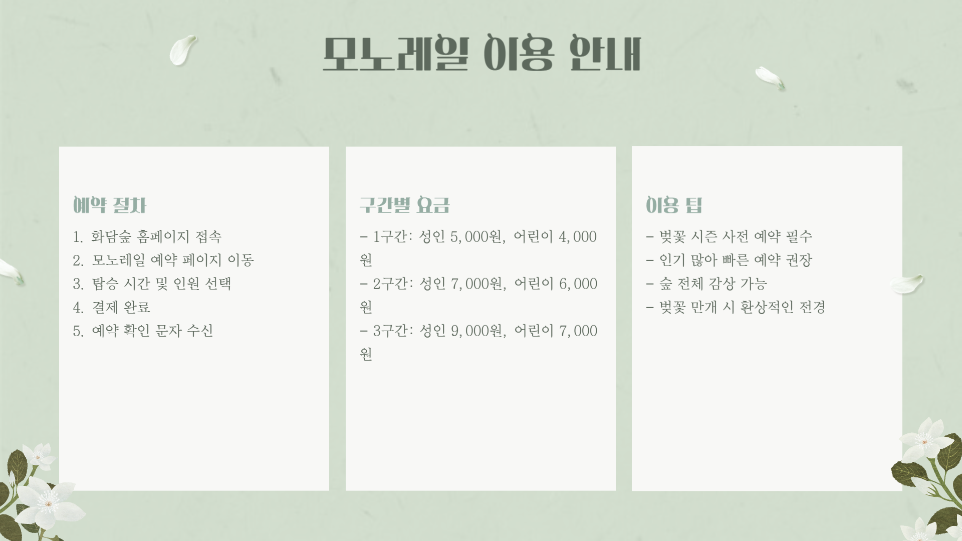 - 🔎 모노레일 예약 절차 화담숲 공식 홈페이지 접속