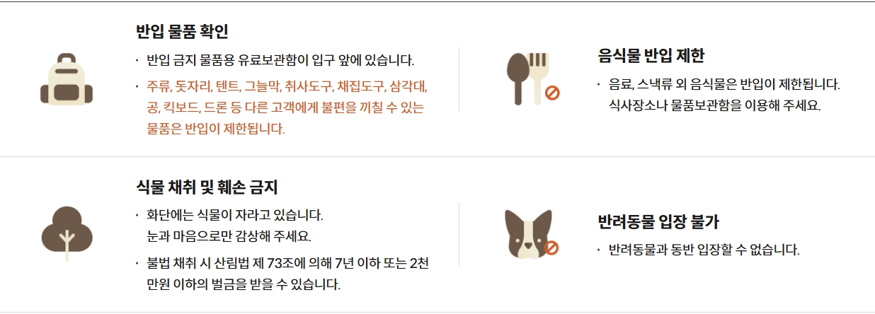- 입장 요금은 계절에 따라 변동될 수 있으니, 방문 전에 공식 홈페이지에서 최신 요금을 확인하는 것이 좋습니다.