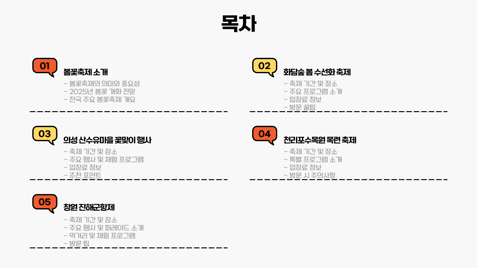 이번 포스팅에서는 2025년 전국 봄꽃축제 일정, 주요 프로그램, 입장료, 꿀팁까지 한 번에 정리해 드릴게요!